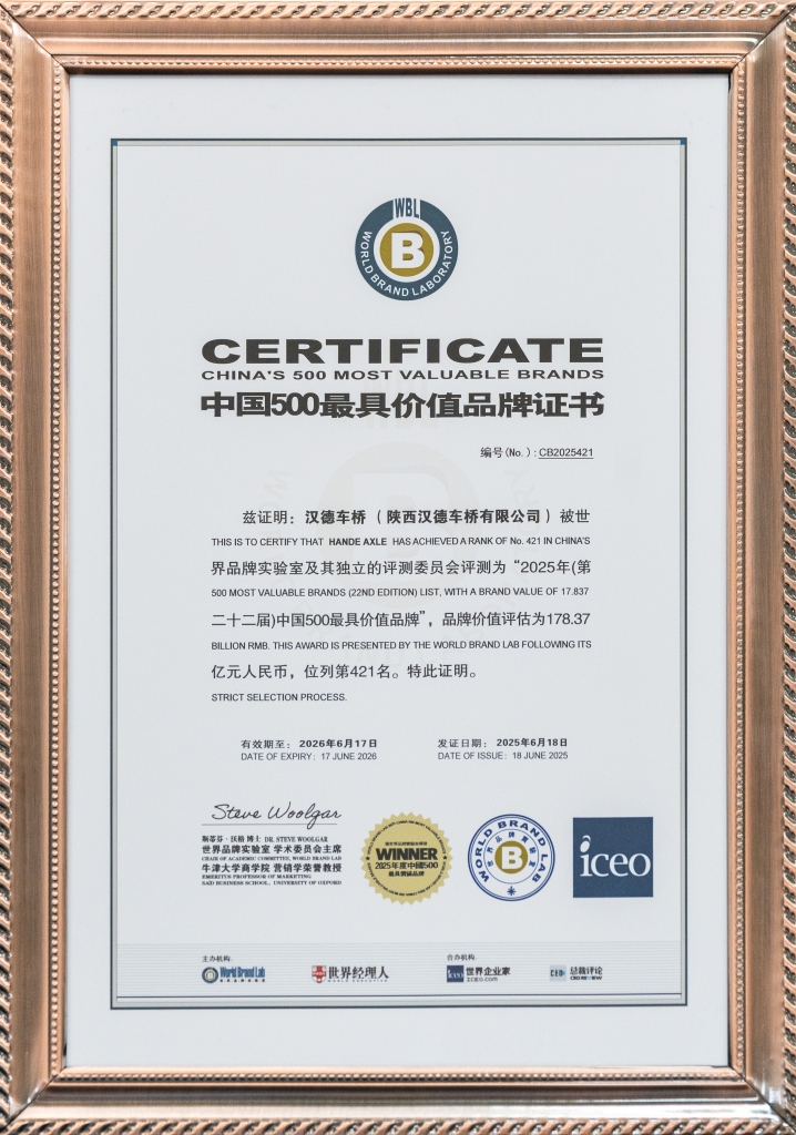178.37億元!漢德車橋品牌價(jià)值再攀高峰