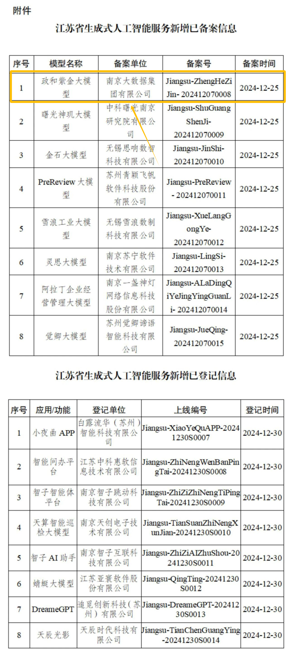 附件:江蘇省生成式人工智能服務(wù)新增已備案(登記)信息