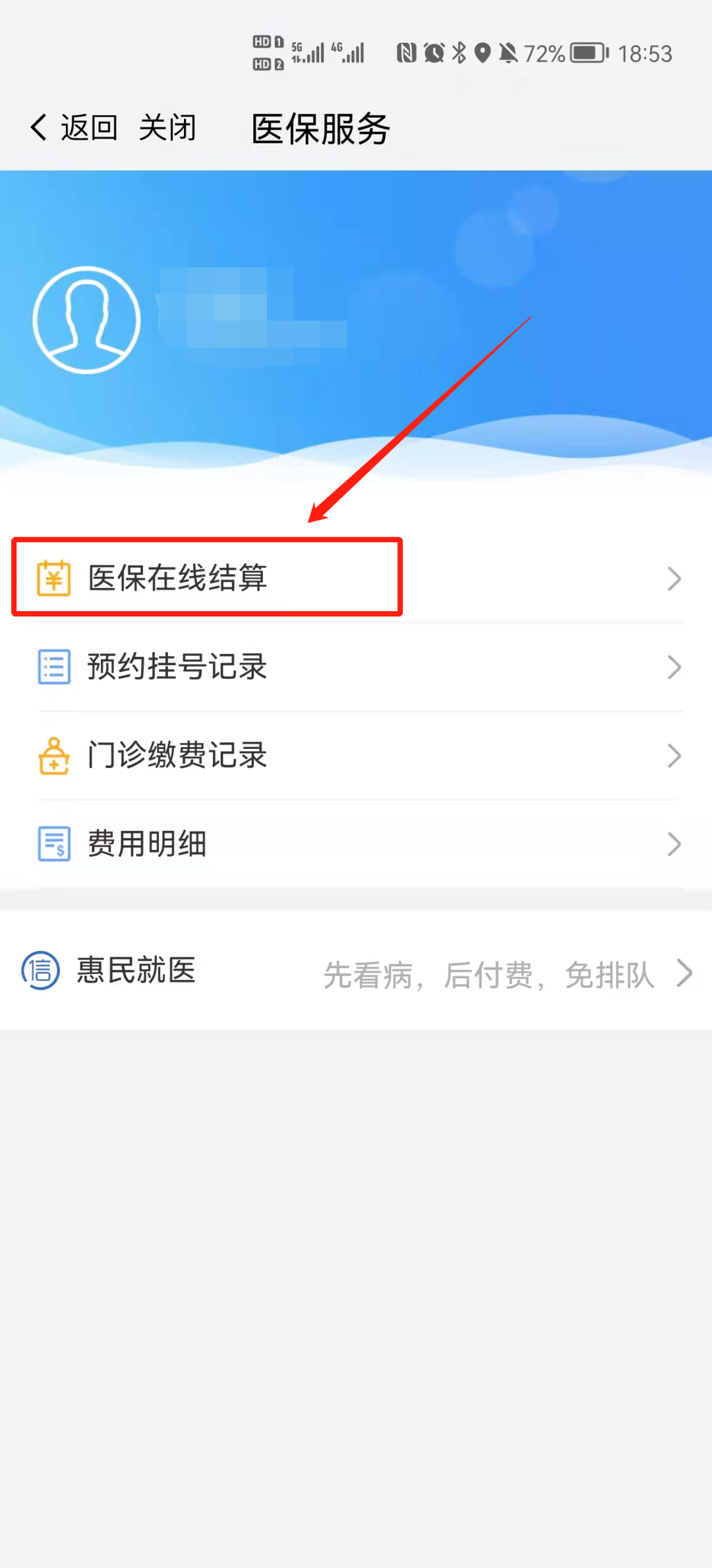 第三步:進(jìn)入醫(yī)保服務(wù),點(diǎn)擊“醫(yī)保在線結(jié)算”進(jìn)入。