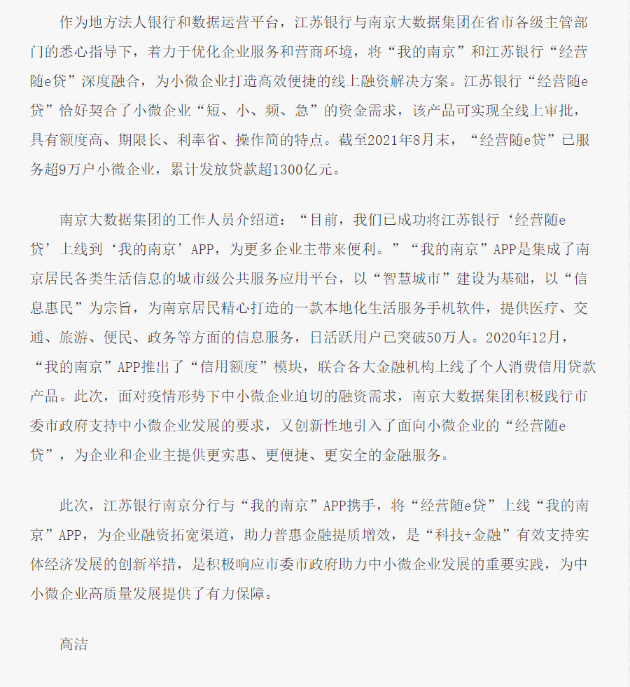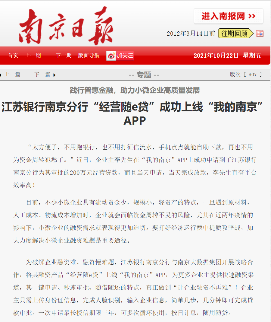 助力小微企業(yè)高質(zhì)量發(fā)展,普惠金融產(chǎn)品正式上線“我的南京”APP!