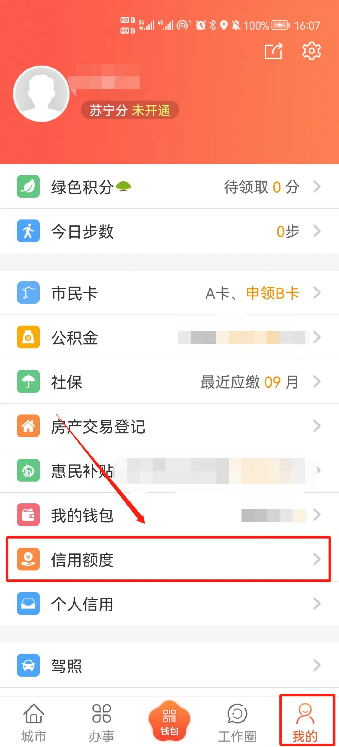 2、點(diǎn)擊“我的頁面—信用額度”,再點(diǎn)擊“經(jīng)營(yíng)隨e貸”立即申請(qǐng)按鈕,即可進(jìn)入申請(qǐng)頁面。