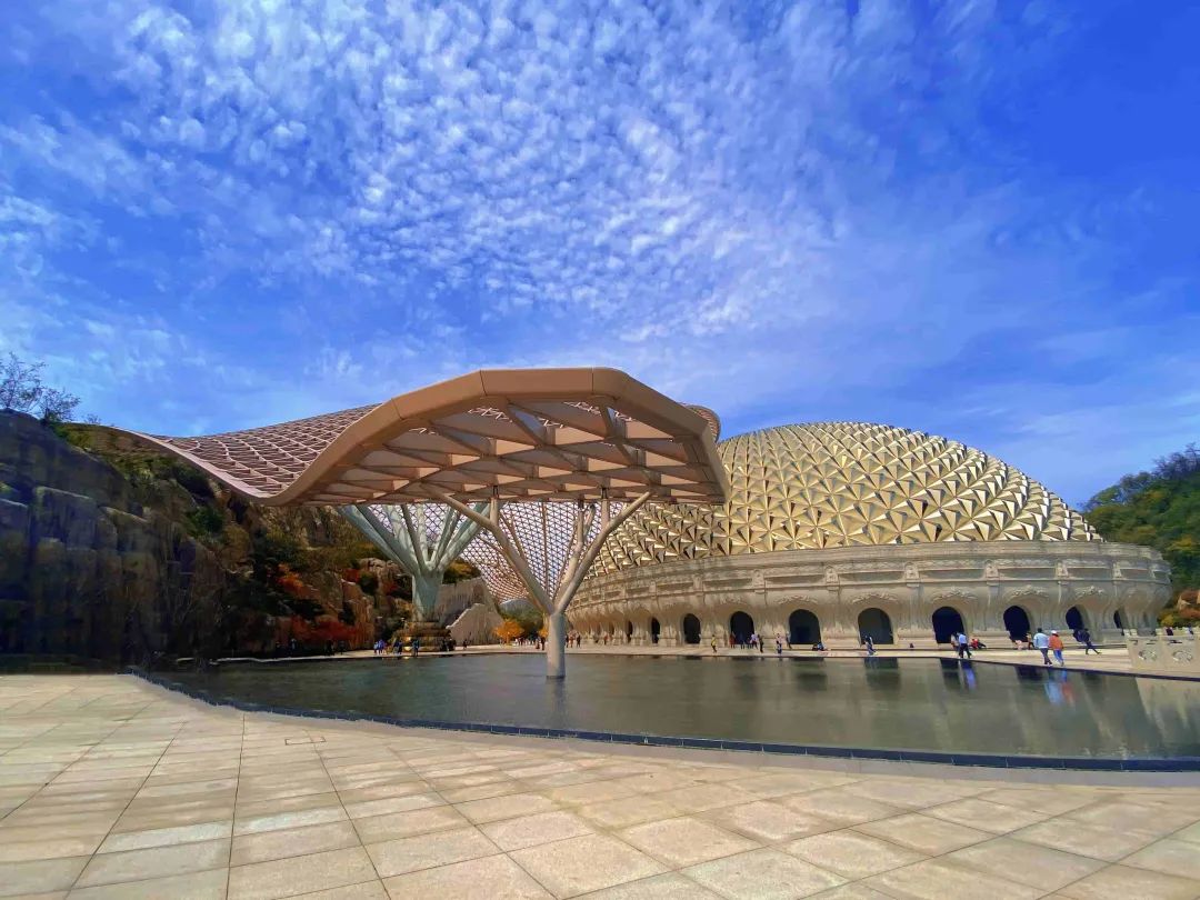 說到南京,大家通常會想到夫子廟,但民間也有“春牛首秋棲霞”的古話。作為南京網(wǎng)紅地標性建筑的牛首山有著“大榴蓮”之稱,是金陵四大名勝之一,因山頂東西雙峰形似牛頭雙角而得名。其中最出名的打卡點就是佛頂宮,地上3層地下6層,里面更是精美絕倫,每下一層樓都有著時空穿越的感覺,很適合假期帶家人一起拍照游玩。